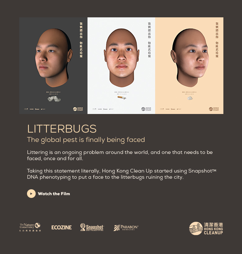 "This campaign is one of a kind. It's our own science experiment that we're using to create social change. Litter is such a major problem in Hong Kong and thanks to newly available DNA technology from Parabon, we can now put a face to this anonymous crime and get people to think twice about littering," Reed Collins, Chief Creative Officer of Ogilvy & Mather Group Hong Kong explained.